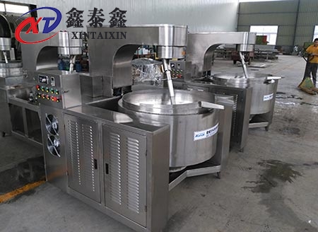 火鍋底料炒鍋攪拌系統采用自轉公轉相結合的方式,免拆裝攪拌器,利用液壓推力傾翻鍋體,采用無級變頻調速器能將高粘度產物混合均勻加熱提高熱量,設備廣泛應用于火鍋底料、各種醬料、食品餡料加工制造 肉制品熟食加工、調味品加工等行業。也適用于蓮蓉、水果蓉、豆餡、棗泥、醬料、阿膠、咖喱調 理食品以及日用化工、制藥等行業。行星攪拌炒鍋適合大型賓館、飯店、酒店、餐廳、企業、醫 院大專院校食堂、中 央廚房用于熬湯、燒菜、燉肉、熬粥等。